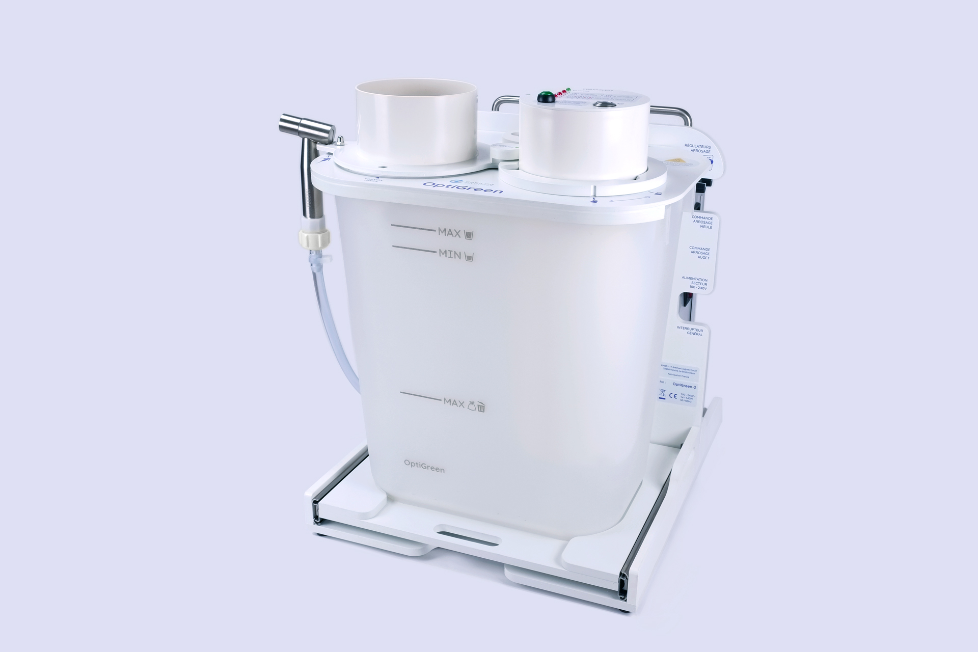 - rend l'utilisation quotidienne simple et précise avec le contrôle visuel des niveaux d'eau et de déchets