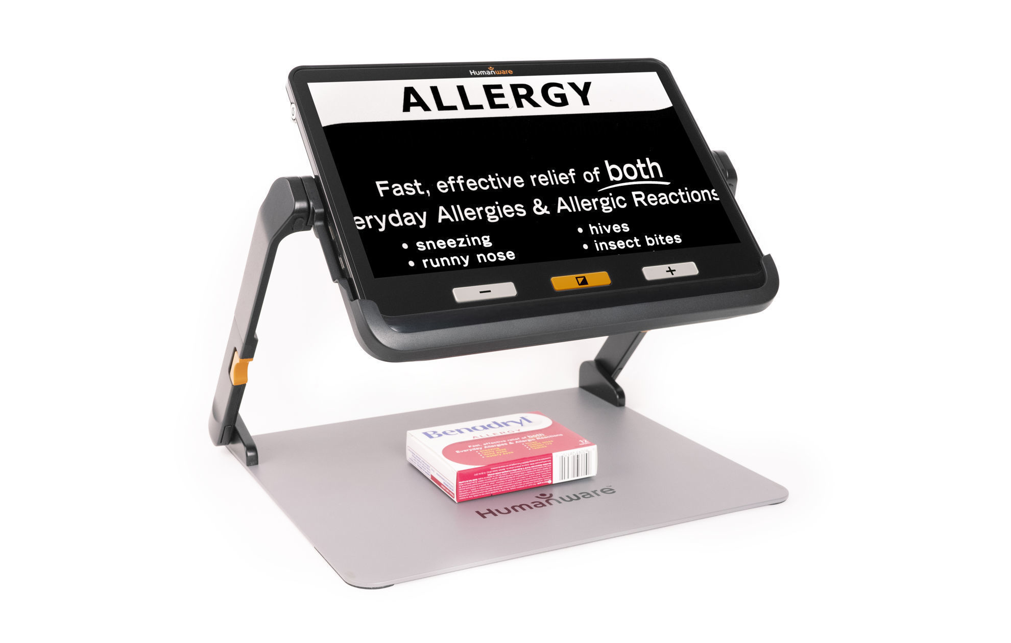 Grâce à sa plage de grossissement supérieure, cette loupe électronique de la taille d’une tablette permet de poursuivre les activités quotidiennes comme la lecture, l’écriture, la peinture, la visualisation de photos ou de cartes, et bien plus encore.