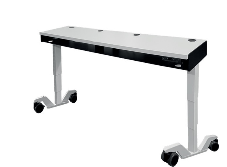 Les tables électromotrices Rondo-Trio® permettent de positionner facilement 3 équipements à la bonne hauteur par un simple appui avec 4 mémorisations de hauteurs possibles.